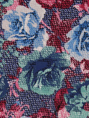 Blue/Pink/Green Rose Printed Stretch Cotton Poplin