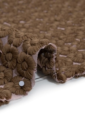 Heavily Embroidered Polyester Crinkled Chiffon – Pink and Brown Flower Dots