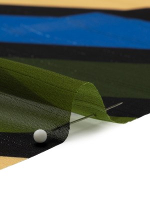 Polyester Chiffon Print with Metallic Pinstripes – Green, Orange and Blue Geometric – Mood Exclusive Through the Window