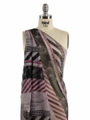 Plum, Black and Lavender Clouds and Stripes Silk Chiffon