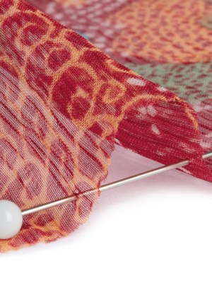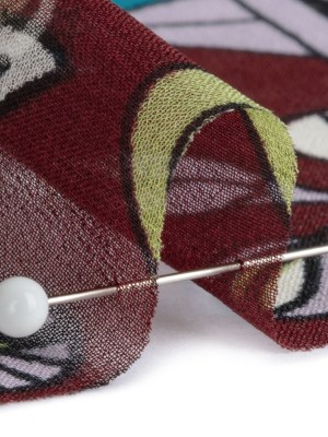 Black, Red and White Echoes of Leaves Crinkled Silk Chiffon