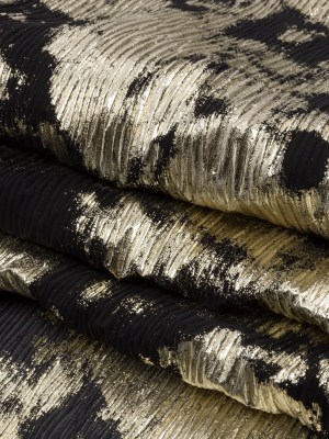 Polyester Chiffon with Abstract Pleats and Gold Foil – Black – Melia Collection