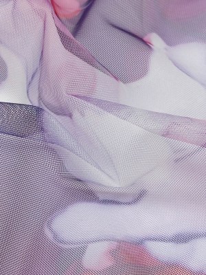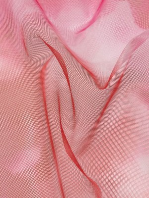 Pink and Red Abstract Watercolor Printed Tulle