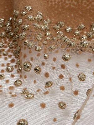 Beige and Silver Abstract Glitter Tulle