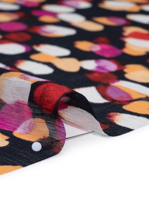 Crinkled Polyester Chiffon Print – Navy, Magenta and Peach Abstract Spots – Designer Deadstock
