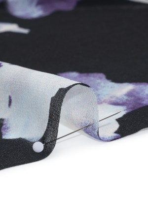 Polyester Chiffon Print – Black, White and Purple Watercolor Flowers – Designer Deadstock