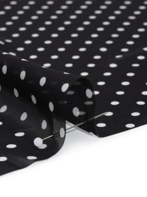 Polyester Chiffon Print – Black and White Polka Dots and Striped Border – Designer Deadstock