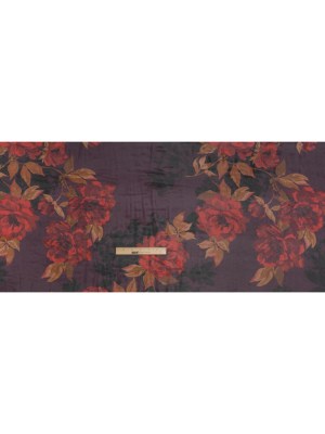 Polyester Chiffon Print – Purple, Red and Tan Floral Bunches – Designer Deadstock