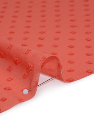 Polyester Swiss Dot Chiffon – Coral Orange Polka Dots – Designer Deadstock