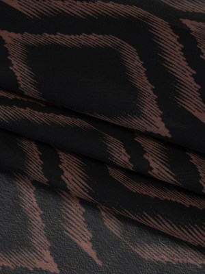 Polyester Chiffon – Black and Tan Ikat Ogees – Designer Deadstock
