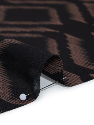 Polyester Chiffon – Black and Tan Ikat Ogees – Designer Deadstock