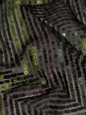 Tulle with Baby Sequins – Gradient Green Zig Zag on Black