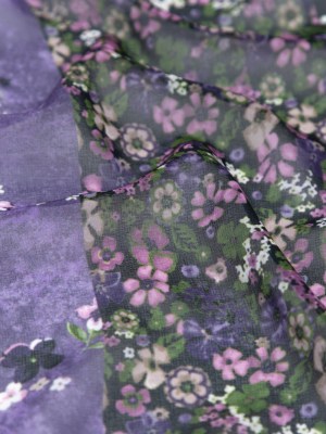 Antique Purple and Rust Abstract Silk Chiffon