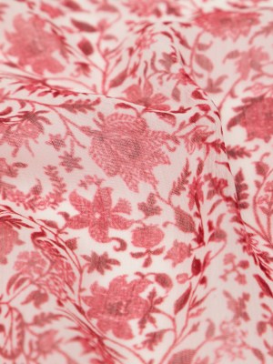 Italian Cranberry and Bright White Floral Crinkled Polyester Chiffon