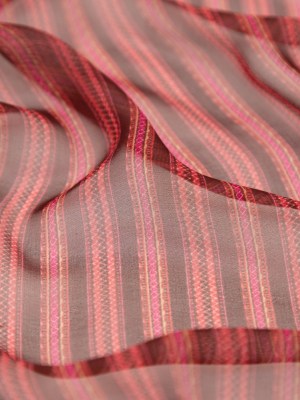 Famous NYC Designer Red and Pink Striped Silk Chiffon