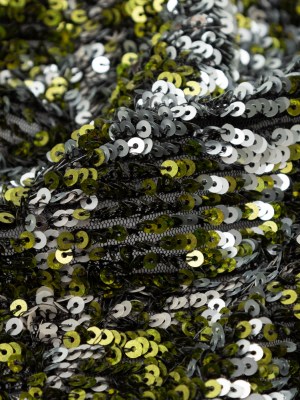 Mesh with Baby Sequins – Metallic Green and Silver on Black