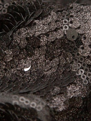 Mesh with Sequins – Metallic Black Cracking Spots on Black