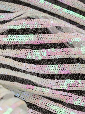 Netting with Baby Sequins – Glittery Green and Pink Iridescent Stripes on White