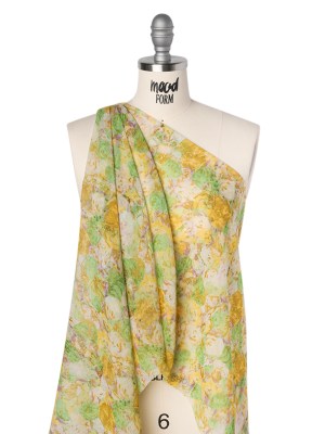 Silk Chiffon Print Made in Italy – Yellow, Green and Lilac Painterly Floral – Deadstock