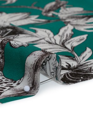Silk Georgette Print Made in Italy – Teal, Black and White Leopards in the Lilies – Deadstock