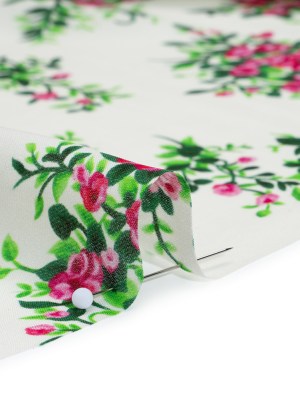 Silk Georgette Print – Pink, Green and Ivory Flower Bunches – Deadstock