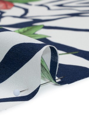 Silk Crepe de Chine Print Made in Italy – Navy, Pink and Green Zebra Stripes, Flowers and Chain Borders – Deadstock