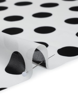 Polyester Chiffon Print – Black and White Polka Dots – Designer Deadstock