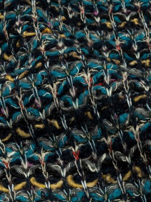 Teal, Yellow and Navy Boucle Stripes Chunky Wool Blend Sweater Knit