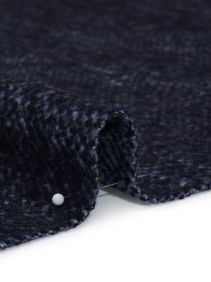 Brushed Wool and Silk Coating Made in Italy – Tweedy Blue and Navy Herringbone – Deadstock