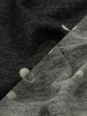 Heathered Bristol Black and White Alyssum Polka Dots Stretch Polyester and Rayon French Terry