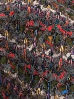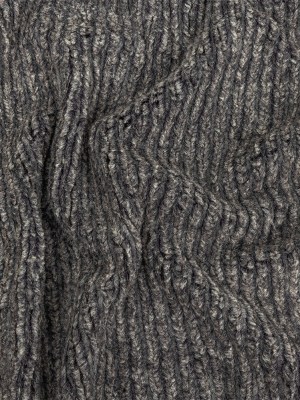 Dark Gull Gray, Golden Olive and Coral Stripes Boucled Wool Sweater Knit