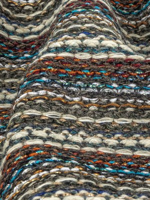 Turquoise, Brick and Metallic Silver Striped Chunky Wool Knit