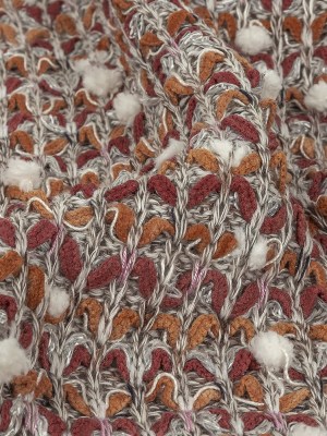 Pumpkin, Maroon and Silver Stretch Sweater Knit with Mini Sugar Swizzle Poms