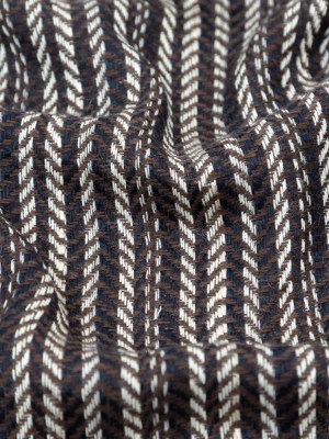 Brown Navy and White Striped Chevron Wool Woven