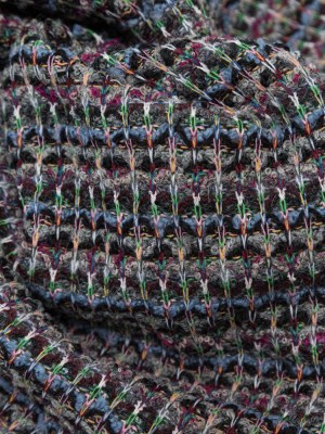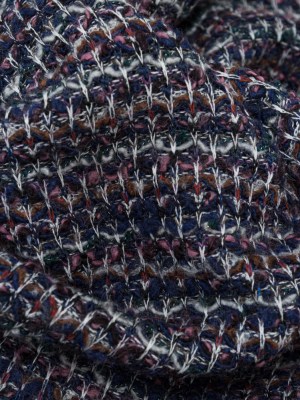 Italian Navy, Gray and White Speckled and Striated Fuzzy Blended Wool Sweater Knit