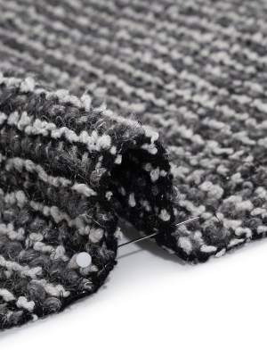 Metallic Wool Blend Boucle Coating Made in Italy – Gray, White and Silver Tweedy Stripes