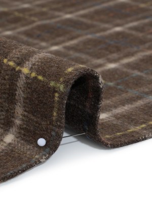 Brushed Wool Double Cloth Coating – Brown, Cream and Blue Plaid – Deadstock