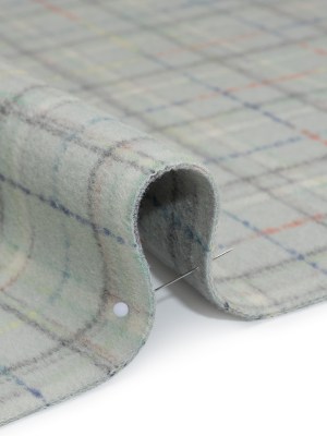 Brushed Wool Double Cloth Coating – Mint, Charcoal and Blue Plaid – Deadstock