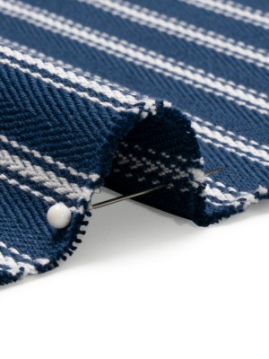 White on Navy Ticking Stripes Cotton Herringbone Twill