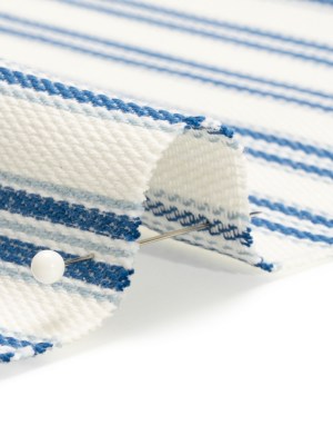 White, Summer Blue and Sky Blue Modern Ticking Stripes Cotton Twill