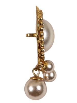 Vintage Gold, Crystal and Pearl Rhinestone Shank Back Button with Hanging Pearl Beads – 40L/25.5mm