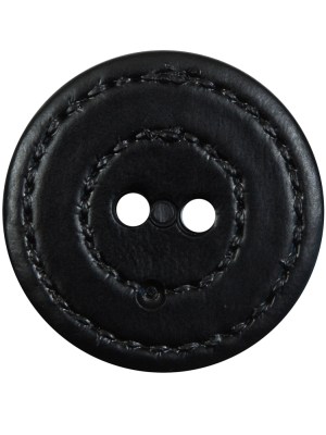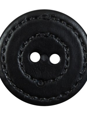 Black Faux Leather Plastic 2-Hole Button – 44L/28mm
