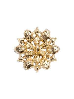 Rhinestone and Metal Shank Back Button – 32L/20mm – Crystal and Gold Little Open Flower