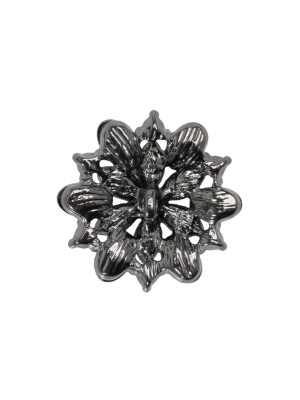 Rhinestone and Metal Shank Back Button – 32L/20mm – Black Diamond and Gunmetal Little Open Flower