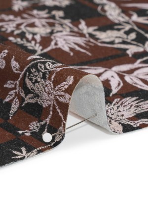 Stretch Flowers and Cranes Jacquard Print – Brown and Black Plaid – Mood Exclusive Long Live