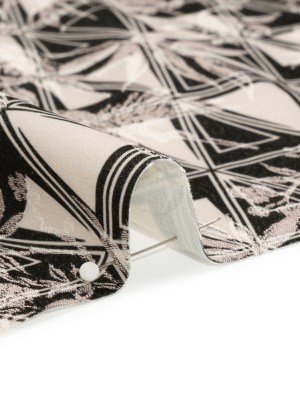 Stretch Flowers and Cranes Jacquard Print – Black and Cream Triangles – Mood Exclusive Take Flight