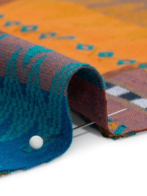 Royal, Orange and Teal Geometric Stripes Cotton and Rayon Jacquard