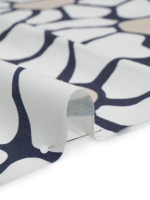 Linen and Rayon Woven – Dark Blue, White and Beige Abstract Daisies – Mood Exclusive Dilly-Dally Daisies Print