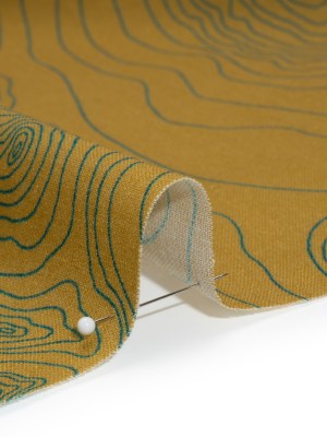 Linen and Rayon Woven – Olive and Hunter Green Abstract Lines – Topographic Map Print – Mood Exclusive Acadia Collection