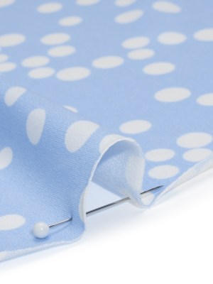 Stretch Polyester Tricot – Baby Blue and White Polka Dots – Designer Deadstock